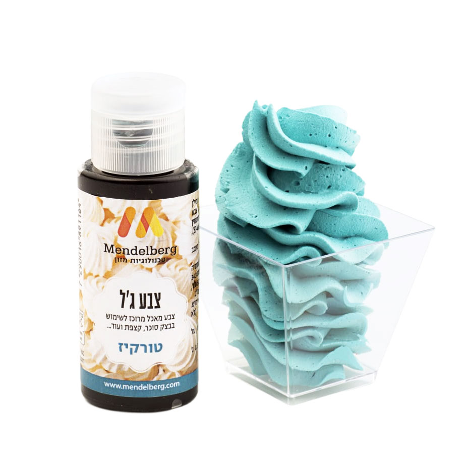 צבע מאכל ג'ל טורקיז מתאים לשימוש עם בצק סוכר, קצפות, גלידות, סוכריות ומתוקים.