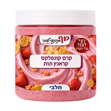 קרם קורנפלקס קראנץ תות איכותי עם חתיכות קורנפלקס ושבבי תות, במרקם קרמי ובטעם עשיר של תות.